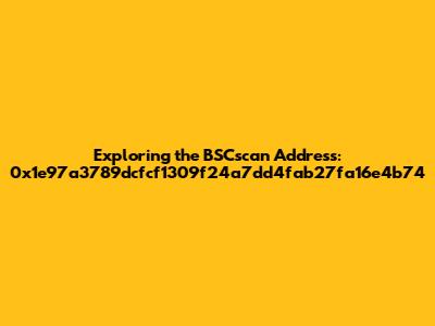 BSCscan Address 0x1e97a3789dcfcf1309f24a7dd4fab27fa16e4b74 Explained