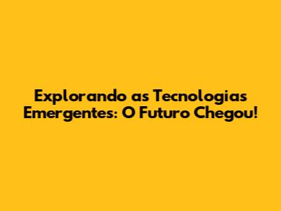 Explorando As Tecnologias Emergentes: O Futuro Chegou!