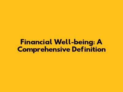 Financial Well-being: A Comprehensive Definition