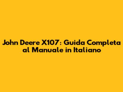 John Deere X107: Guida Completa Al Manuale In Italiano