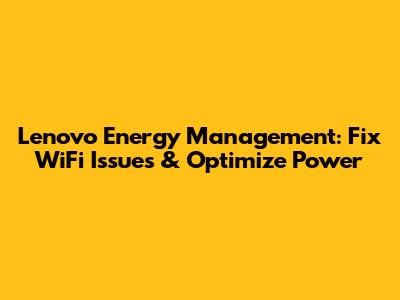 Lenovo Energy Management: Fix WiFi Issues & Optimize Power