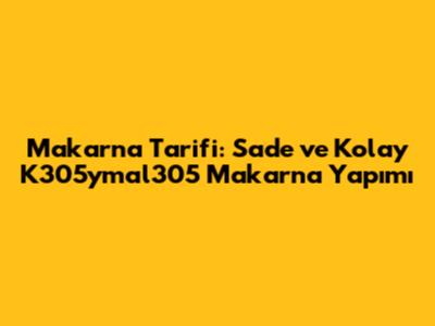 Makarna Tarifi: Sade Ve Kolay K305ymal305 Makarna Yapımı