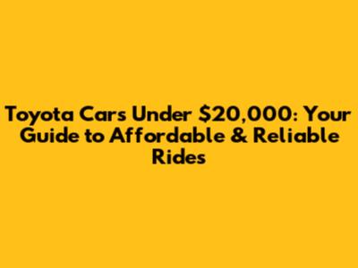 Toyota Cars Under $20,000: Affordable & Reliable Rides