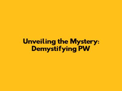 Unveiling The Mystery: Demystifying PW
